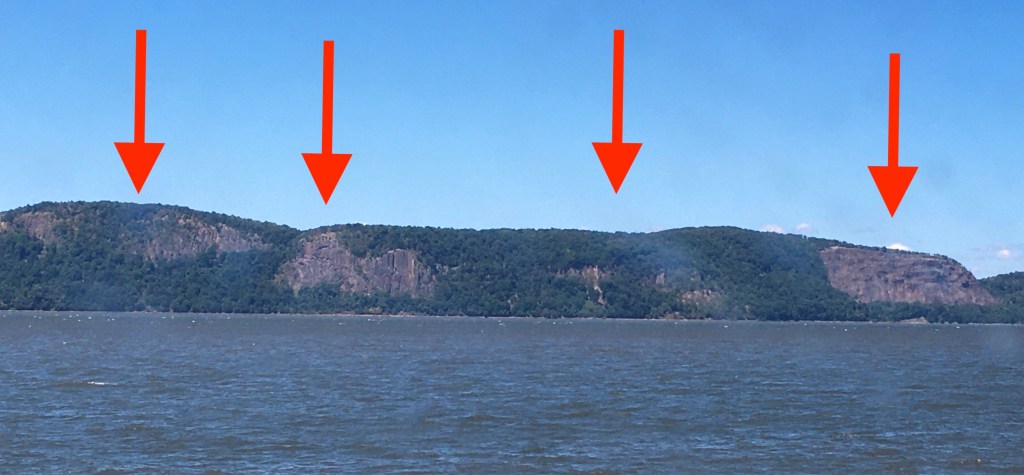 If you stand on Croton Point today and look downriver towards the Mario Cuomo bridge, you’ll see sections where it looks like giant bites have been taken out of the hills across the river: